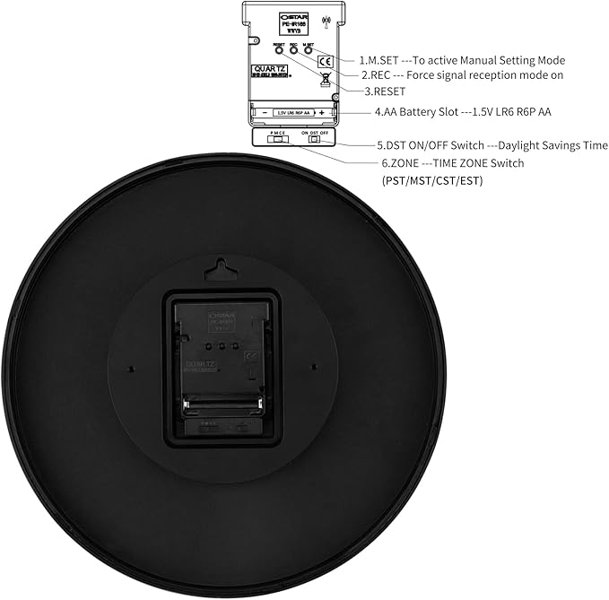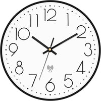 Foxtop Atomic Wall Clock Battery Operated Round Analog Modern Wall Clock Sets Automatically for Office Classroom Bedroom Kitchen Living Room (Black)