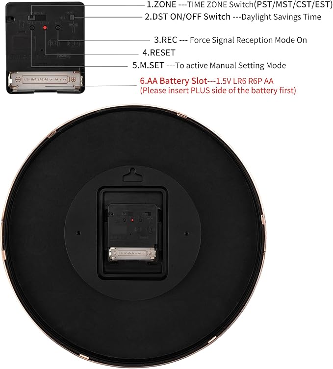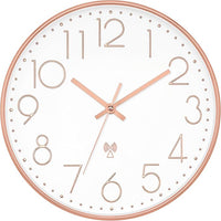 Foxtop Atomic Wall Clock Battery Operated Round Analog Modern Wall Clock Sets Automatically for Office Classroom Bedroom Kitchen Living Room (Rose Gold)