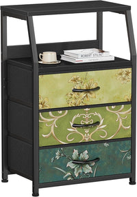 Furnulem Retro Night Stand with 3 Drawers and 2-Tier Shelf, Small Nightstand Side Table, Vintage Storage Dresser for Bedroom, Fabric Drawer Organizer for Closet, Beside Furniture