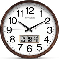 Wall Clock, Classic Wood Style Finish, 13 Inch Non-Ticking Silent Battery Operated Quartz Analog with Perpetual Calendar and F° Temperature Display, Home, Office Décor (Chestnut Brown)