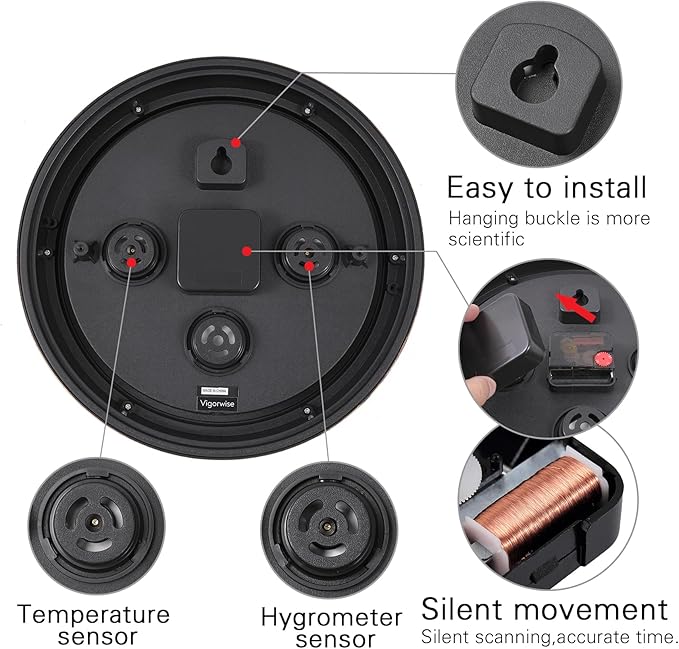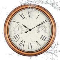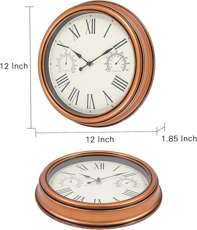 12 inch Outdoor Wall Clock, Plastic Waterproof Wall Clock with Temperature & Humidity for Patio Garden Home