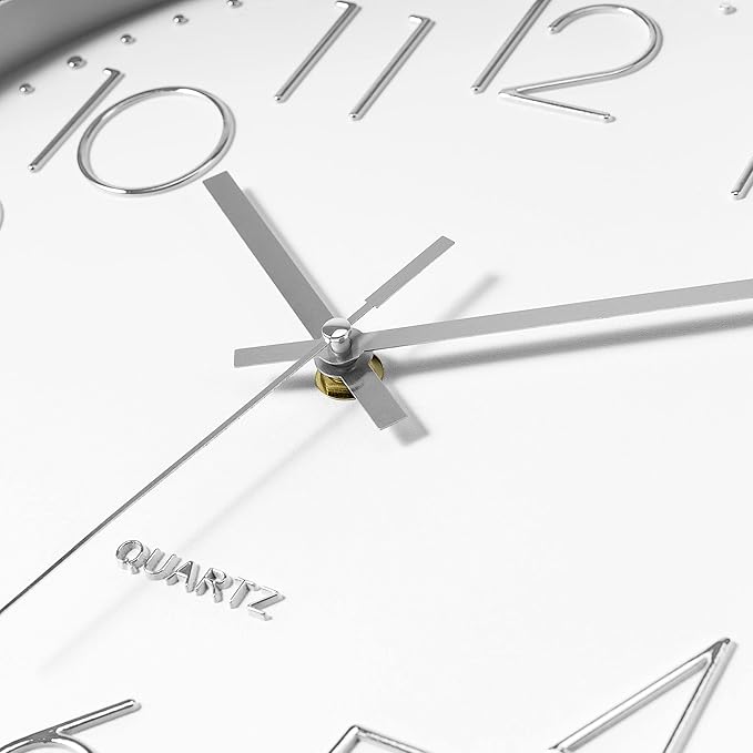 Foxtop 14 Inch Large Silver Wall Clock Silent Non-Ticking Battery Operated Round Quartz Modern Wall Clock Decorative for Living Room Bedroom Kitchen Home Office