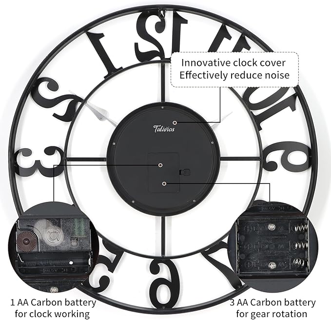 29 Inch Large Wall Clocks for Living Room Decor with Moving Gears,Large Wall Clock Industrial Steampunk,Oversized Metal Analog Wall Clocks for Farmhouse Home Battery Operated