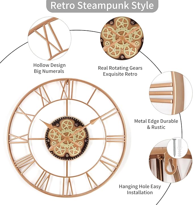 29 Inch Large Wall Clocks for Living Room Decor with Moving Gears,Large Wall Clock Industrial Steampunk,Oversized Metal Analog Wall Clocks for Farmhouse Home Battery Operated