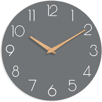 Wall Clock, 14 Inch Wooden Silent Non-Ticking, Decorative Battery Operated Wall Clocks for Bedroom, Kitchen, Home, Living Room, Office, School, Hotel (Gray)