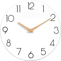Wall Clock, 12 Inch Wooden Silent Non-Ticking, Decorative Battery Operated Wall Clocks for Bedroom, Kitchen, Home, Living Room, Office, School, Hotel (White)