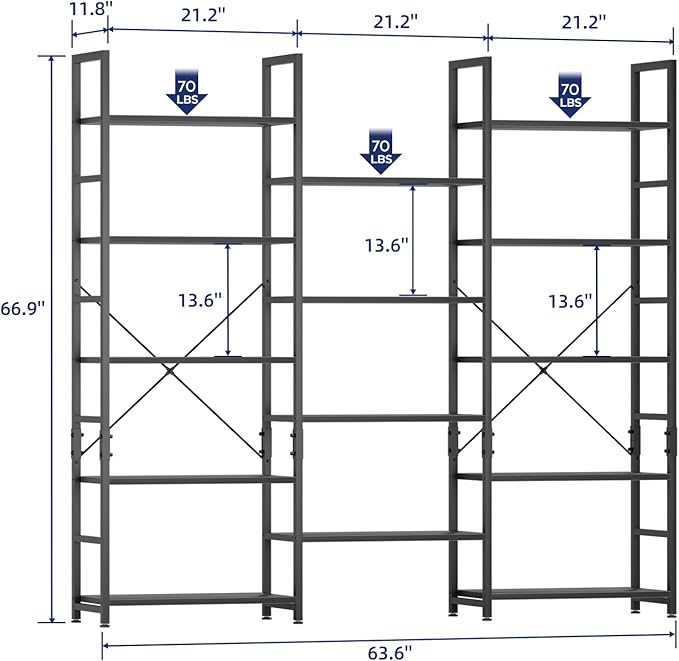 NUMENN Triple 5 Tier Bookshelf, Wide Book Shelf with 14 Open Display Shelves, Modern Tall Bookcase Furniture for Living Room Home Office, Black