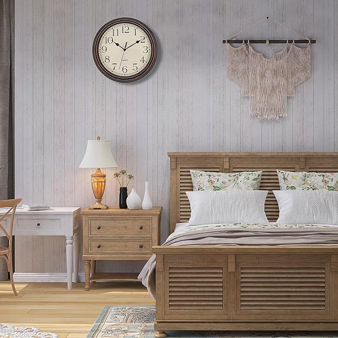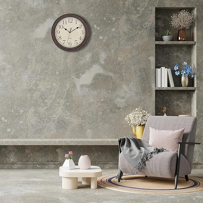 Foxtop 14 Inch Wall Clock Battery Operated Silent Non-Ticking Round Classic Vintage Retro Wall Clock Decorative for Living Room Kitchen Home Office (Bronze)