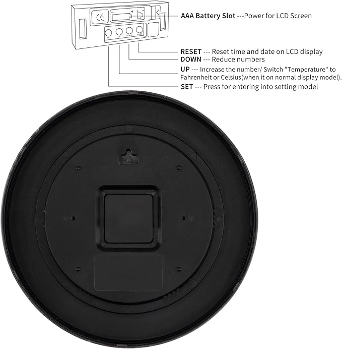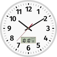 Foxtop Digital Wall Clock with Time, Day of Week and Temperature, Silent Non-Ticking Battery Operated Round Digital and Analog Wall Clock for Classroom Office Bedroom Home School (12 Inch, Silver)