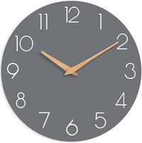 Wall Clock, 16 Inch Wooden Battery Operated Wall Clocks Silent Non-Ticking, Decorative Gray Clock for Living Room, Bedroom, Kitchen, Home, Office, School, Hotel