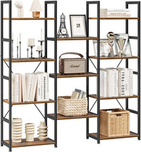 NUMENN Triple Column 4 Tier Bookshelf, Bookcase with 11 Open Display Shelves, Adjustable Rustic Industrial Style Book Shelves, Modern Bookshelves for Bedroom, Living Room and Home Office, Vintage