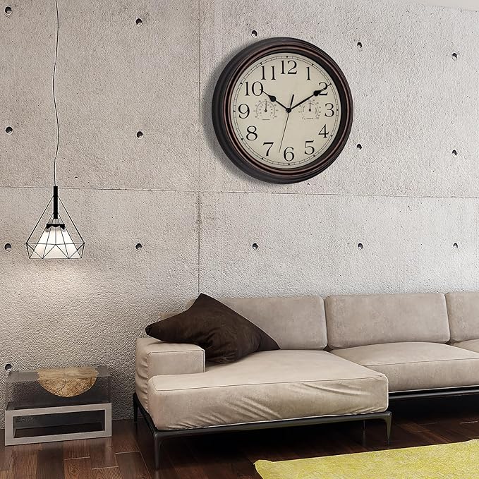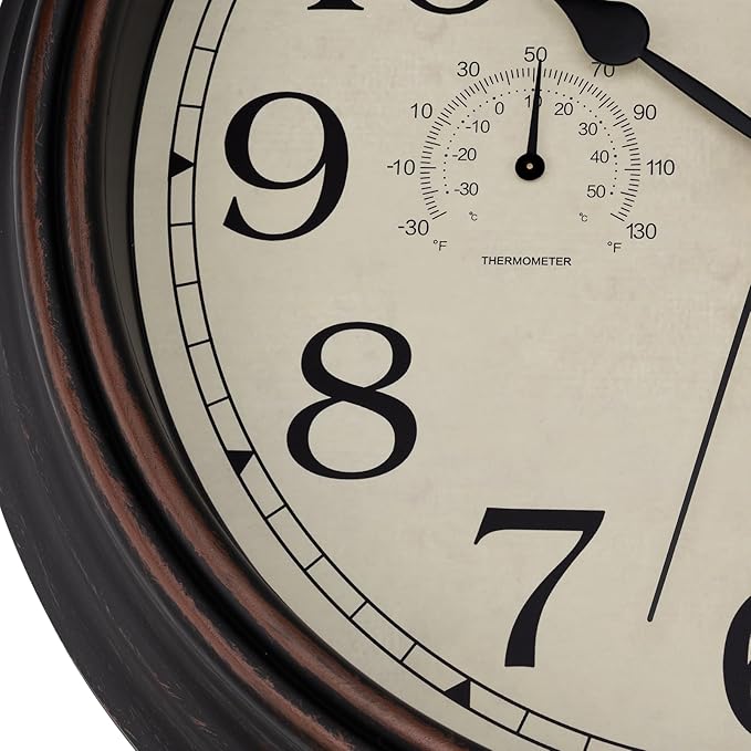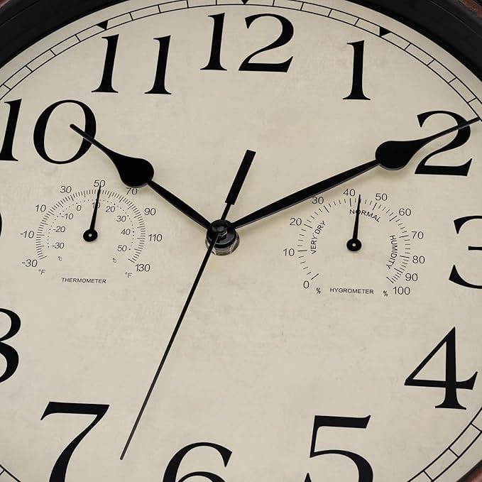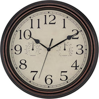 Foxtop Indoor Outdoor Waterproof Wall Clock with Thermometer and Hygrometer Combo, 14 Inch Retro Silent Non-Ticking Battery Operated Quartz Round Outdoor Clocks for Patio Home Office (Bronze)