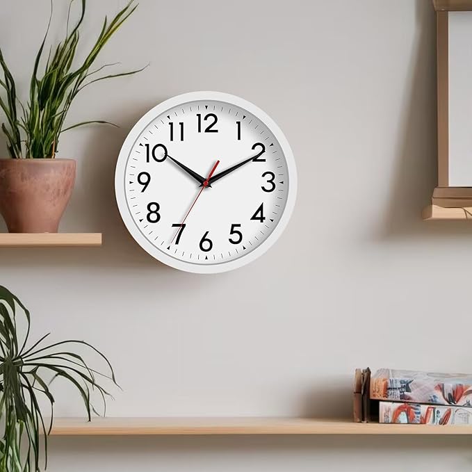 Wall Clock Small Analog 8 Inch Silent Non Ticking Battery Operated Modern Simple Decorative for Kitchen Office Bedroom Bathroom Living Room(White)