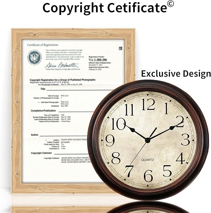 Wall Clock Battery Operated Vintage Silent Non-Ticking Analog Wall Clocks 8.5 Inch Small Retro Clock Decorative for Kitchen Bathroom Bedroom Home Office (Bronze)