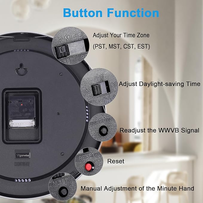 Atomic Analog Wall Clock, 14Inch Radio Controlled Sets Automatically WallClock, Aluminum Frame Wall Clock for Home School Office