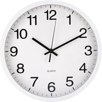 Wall Clock Non-Ticking Silent Quartz Movement Decor Clock Modern Simple Style Round Plastic Wall Clocks for Home/Office/School/Living Room/Bedroom/Kitchen (White, 12 Inch)