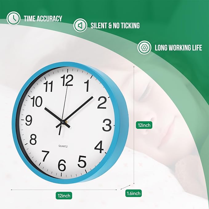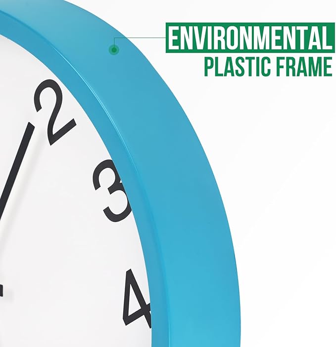 Wall Clock Non-Ticking Silent Quartz Movement Decor Clock Modern Simple Style Round Plastic Wall Clocks for Home/Office/School/Living Room/Bedroom/Kitchen (Blue, 12 Inch)