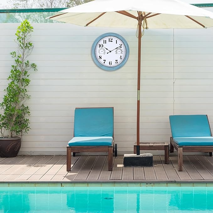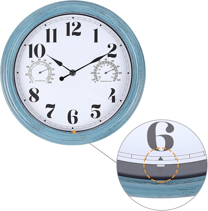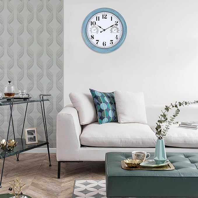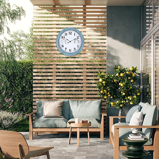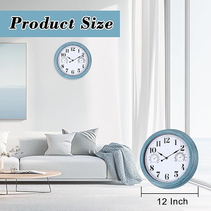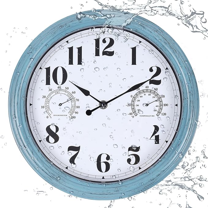 12 inch Outdoor Wall Clock, Plastic Waterproof Outdoor Clock with Temperature & Humidity, Water Resistant Wall Clocks for Patio Garden, Green