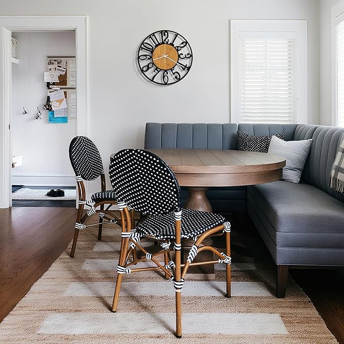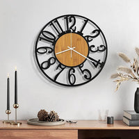 Maxstar Wall Clock Battery Operated,Silent Non-Ticking Modern Rustic Metal Round Clocks Small for Living Room/Bedroom/Office/Kitchen/Farmhouse Home Decor-12 Inch(Yellow-Wood)