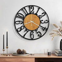 Maxstar Wall Clock Battery Operated,Silent Non-Ticking Modern Rustic Metal Round Clocks Small for Living Room/Bedroom/Office/Kitchen/Farmhouse Home Decor-14 Inch(Yellow-Wood)