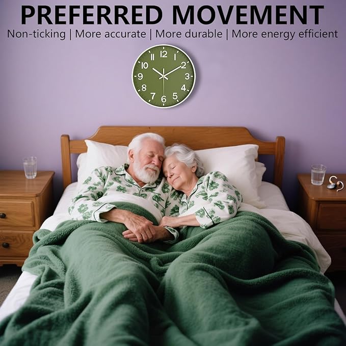 Modern Wall Clock, 10 Inch Digital Wall Clocks Battery Operated, Round Non Ticking Silent Analog Clock for Bedroom Living Room Kitchen Office Gym Classroom Decor, Olive Green