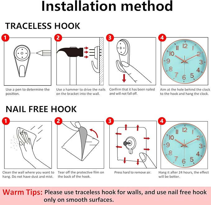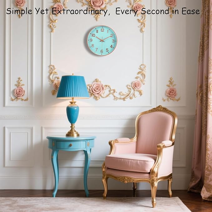 Wall Clock, 8 Inch Wall Clocks Battery Operated, Round Modern Non Ticking Silent Digital Analog Small Wall Clock for Bedroom Living Room Kitchen Office Gym Classroom Outdoor Clocks, Blue