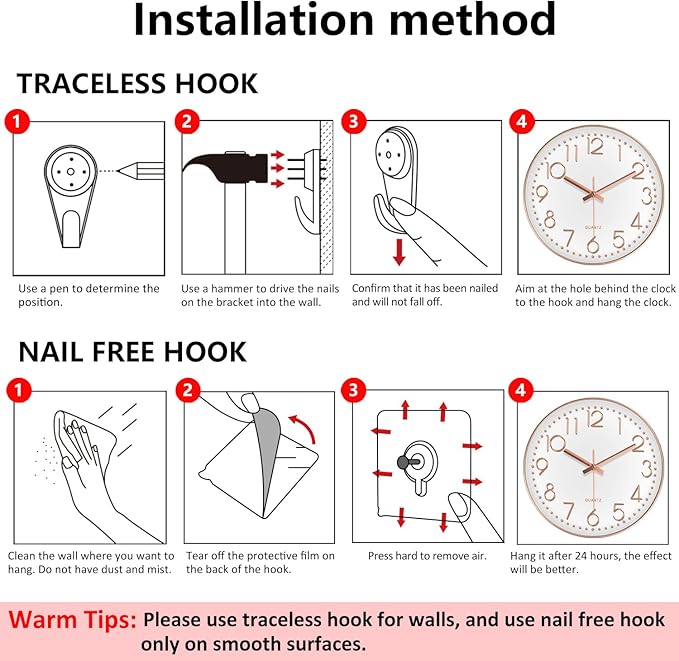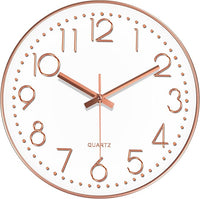Modern Silent Wall Clock - 12 Inch Wall Clocks Battery Operated Large Number, Non-Ticking Analog Clock with Tempered Glass Quartz Clocks for Living Room Bedroom Office Kitchen, Rose Gold