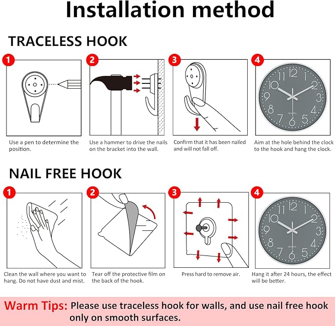 Modern Silent Wall Clock - 12 Inch Wall Clocks Battery Operated Large Number, Non-Ticking Analog Clock with Tempered Glass Quartz Clocks for Living Room Bedroom Office Kitchen, Grey