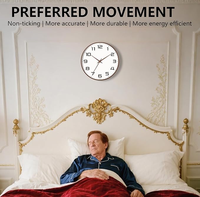 Woodgrain Wall Clocks Battery Operated 12 Inch, Large Easy-to-Read Silent Digital Wall Clock, Non Ticking Modern Vintage Analog Clock for Bedroom Living Room Bathroom Kitchen Office Gym,Brown