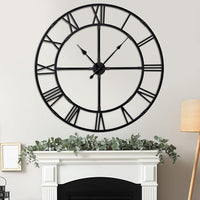 Large Wall Clock for Living Room Decor – 48 inch Silent Non-Ticking Modern Farmhouse Wall Clock, Oversized Decorative Metal Roman Numeral Clock, Black
