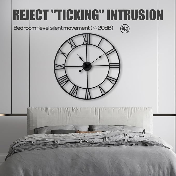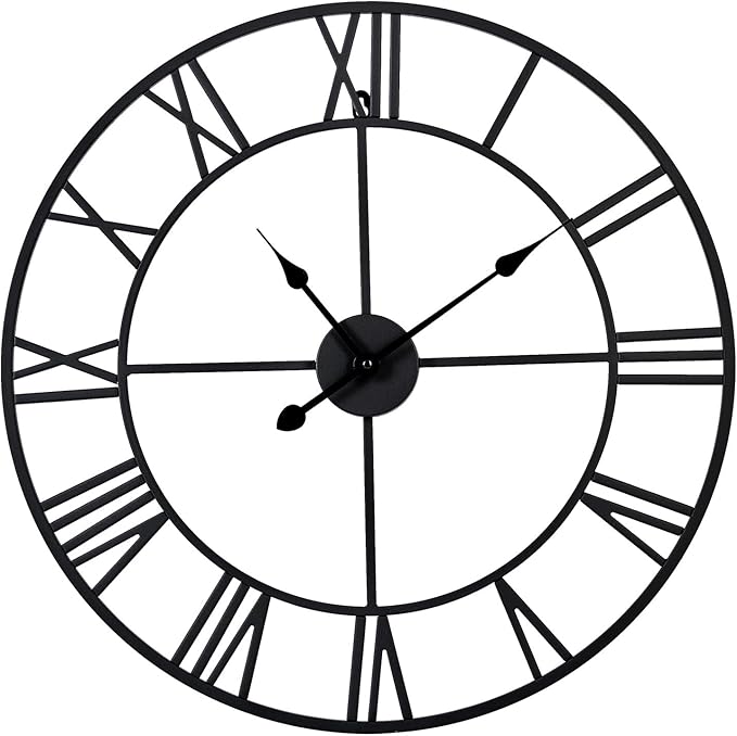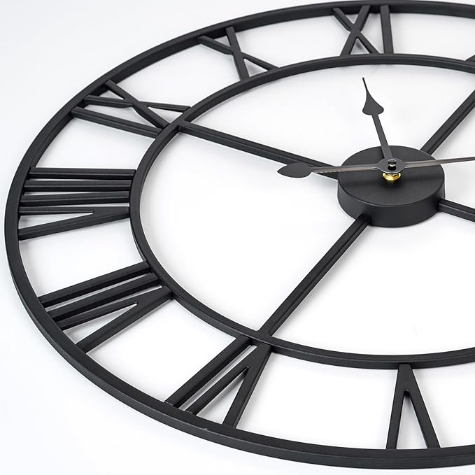 Large Wall Clock for Living Room Decor – 24 Inch Silent Non-Ticking Modern Farmhouse Wall Clock, Oversized Decorative Metal Roman Numeral Clock, Black