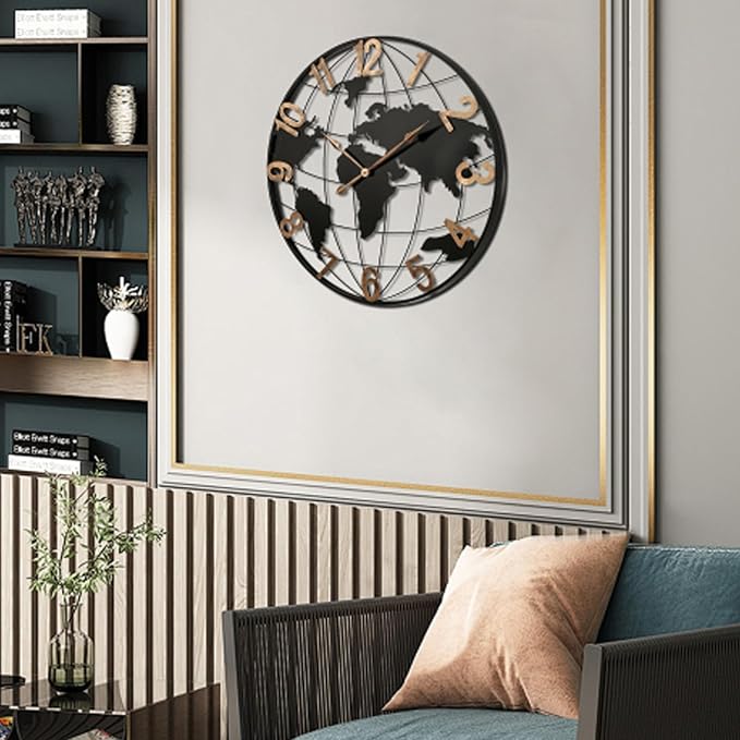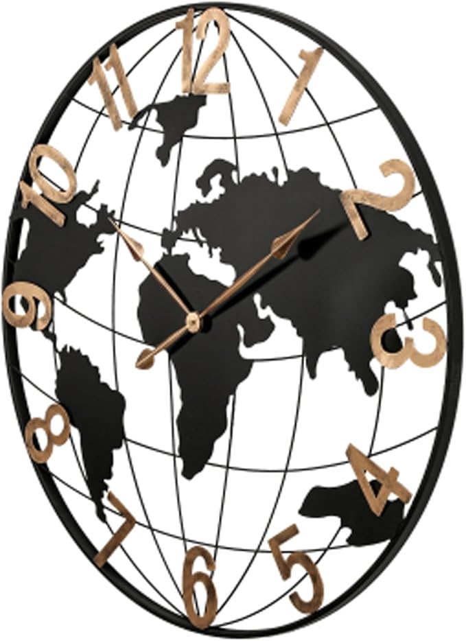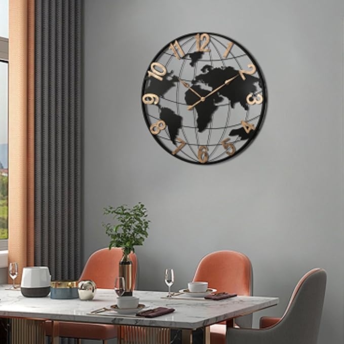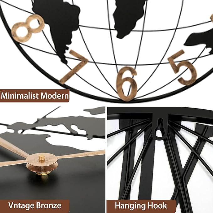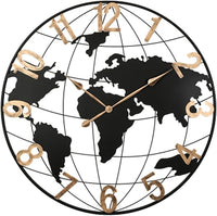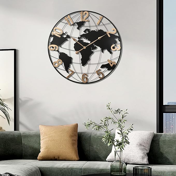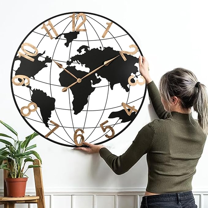 36 Inch Oversized World Map Wall Clock,Large Retro Silent Non-Ticking Battery Operated Clock for Living Room, Bedroom, Office, Kitchen, Black Arabic Numerals