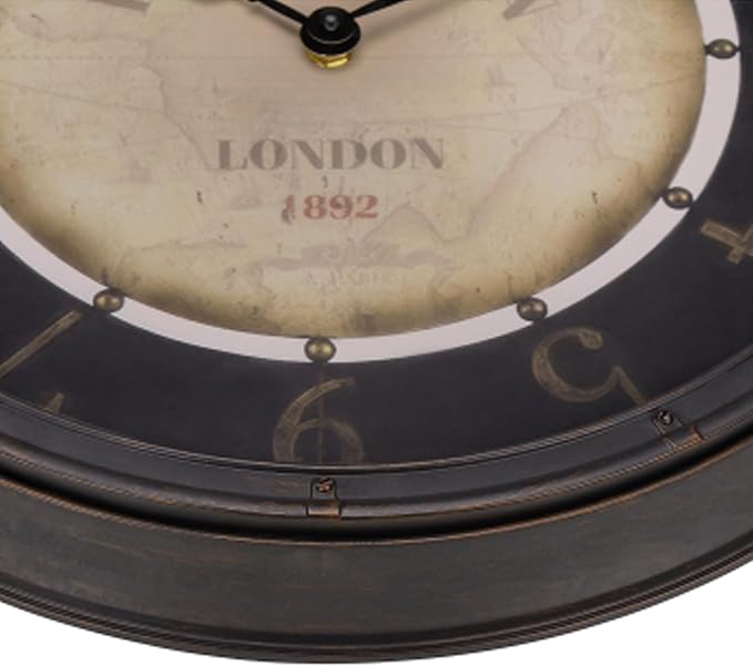 16 Inch Vintage Wall Clock, Silent Non-Ticking Quartz Battery Operated Decorative Clock for Home, Kitchen, Living Room, Dining Room, Office, Gold Brown Arabic Number