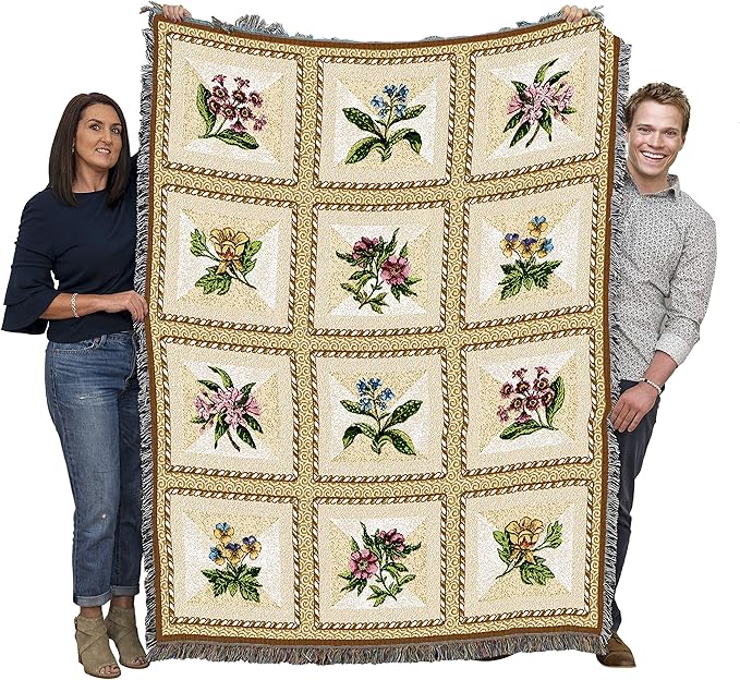 Pure Country Weavers French Floral Blanket by Susan Welsch - Garden Floral Gift Tapestry Throw Woven from Cotton - Made in The USA (72x54)