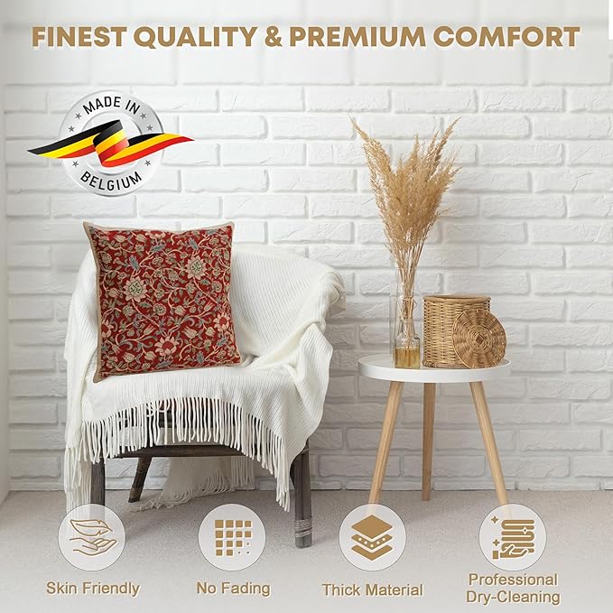 Charlotte Home Furnishings Throw Pillow Covers 16x16 in, Red Flowers Decorative Couch Pillow Cover, Boho Decor European Tapestry Cushion Cases, Living Room Cozy Home Decor, Jacquard Woven Soft Cotton