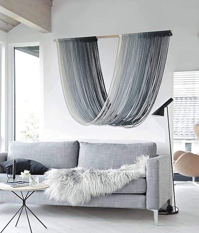 Flber Macrame Wall Hanging Large-Scale Dip-Dye Blue Bohemian Yarn Tapestry Home Room Wall Decor 57" Wx 35" L