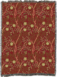 Pure Country Weavers William Morris Sweetbriar Scarlet Blanket XL - Arts & Crafts - Gift Tapestry Throw Woven from Cotton - Made in The USA (82x62)