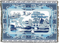 Pure Country Weavers Blue Willow Blanket XL - Asian Gift Tapestry Throw Woven from Cotton - Made in The USA (82x62)