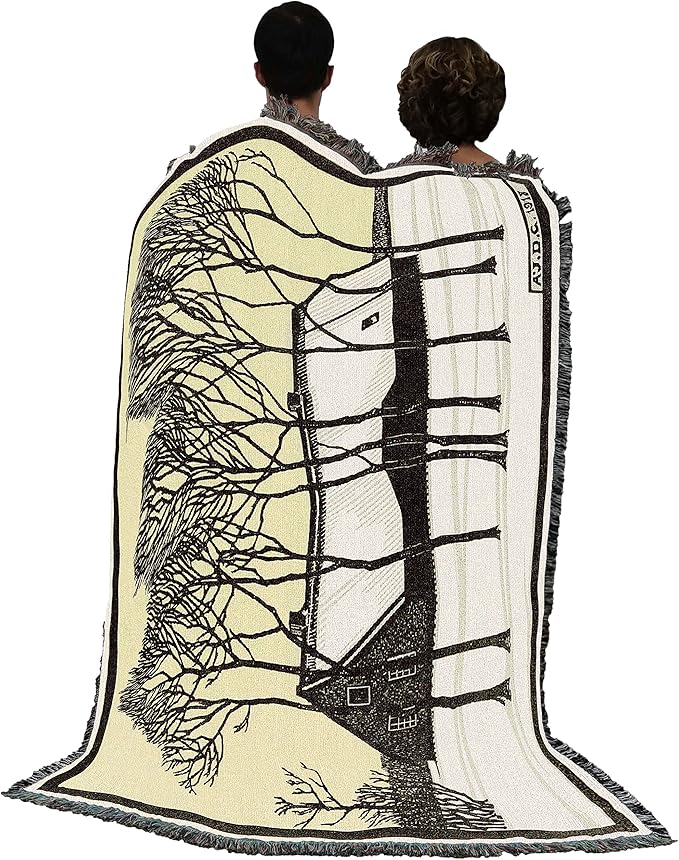 Pure Country Weavers Farm in The Snow Blanket by Julie DeGraag - Fine Art Gift Tapestry Throw Woven from Cotton - Made in The USA (72x54)