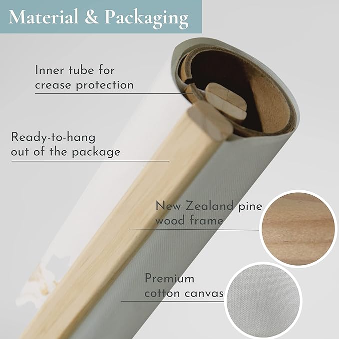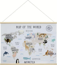 32 x 24 Inch Embroidered World Map Poster for Kids with Wood Hanger – Neutral Wall Décor for Boys and Girls Nursery, Bedroom and Playroom