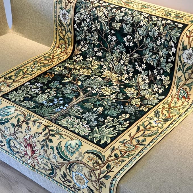 Aubelin Tapestry Large Green William Morris Tree of Life Fine Art Tapestry Wall Hanging Size 55"x41"