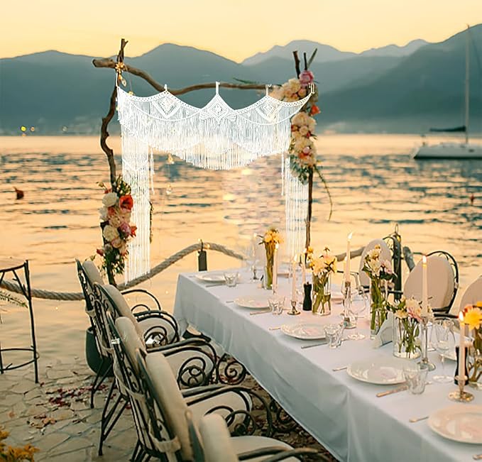 kiido Large Macrame Wedding Backdrop for Arbor/Arch Bohemian Wall Hanging Decor Boho Doorway/Window Curtains Room Divider Home Geometric Art Decor Beautiful Room Decoration-Crown 63" W x 78" L