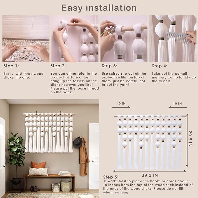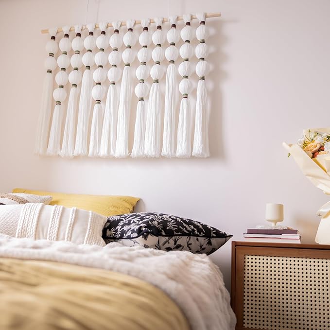 Remmdan Large Macrame Wall Hanging: Extra Large Macrame Wall Decor, Boho Sphericity Fibre Yarn Art, Handmade Bohemian Woven Tapestry for Living Room Bedroom Wedding, 39" W x 30" L, White