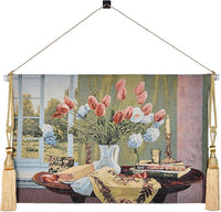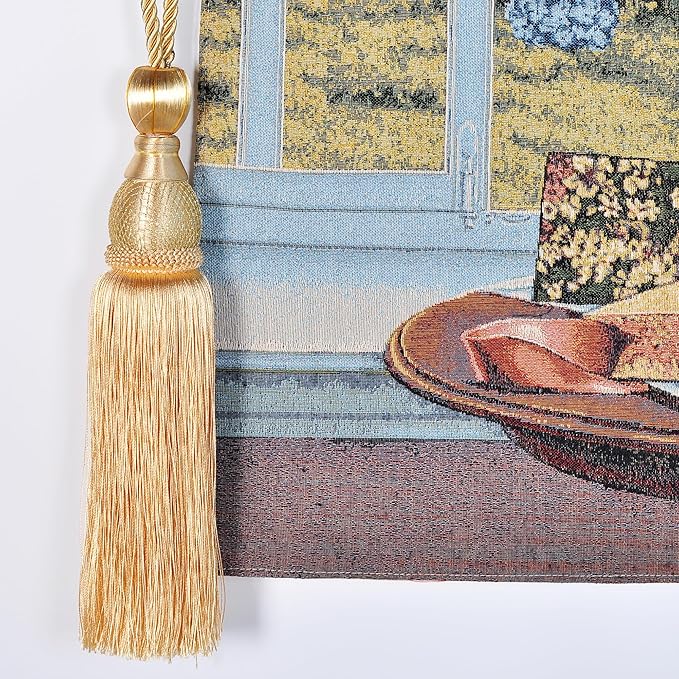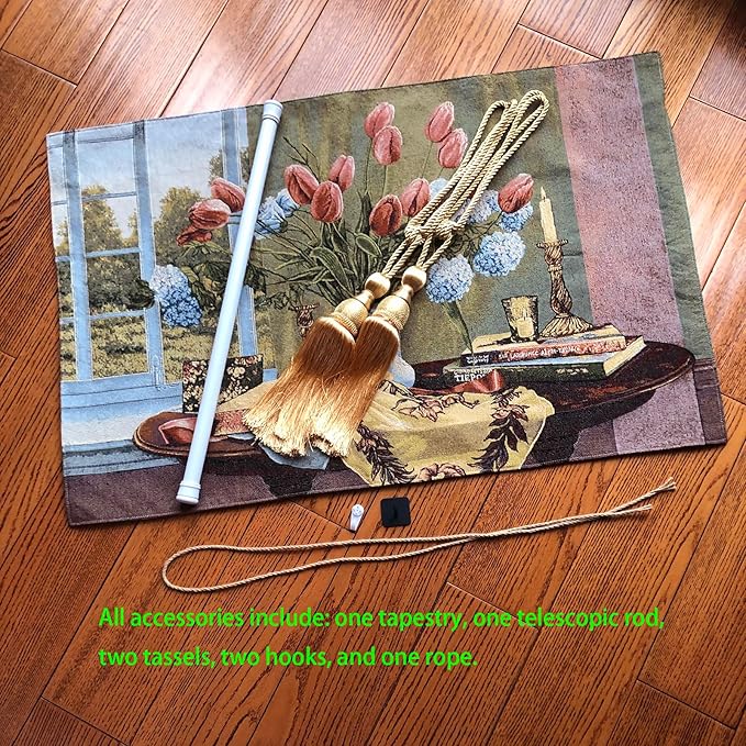 AureoMadis Vintage Floral Tapestry Wall Hanging Set with Telescopic Rod & Tassels - Jacquard Woven Fabric Aesthetic Flower Wall Tapestries for Bedroom/Living Room Decor Spring Botanical Art (42"x27") Sale