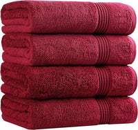 Superior Egyptian Cotton 4-Piece Bath Towel Set for Shower, Bath, Spa, Resort, Hotel, Soft Body Towels, Airbnb Essentials, Apartment, Dorm, Quick Dry, Absorbent, Bathroom Basics, Burgundy