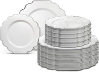 " OCCASIONS " 120 Plates Pack,(60 Guests) Heavyweight Wedding Party Disposable Plastic Plates Set -60 x 10.5'' Dinner + 60 x 8'' Salad/Dessert Plate (Imperial in White & Silver Rim)