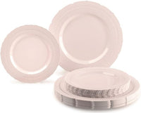 " OCCASIONS " 50 Plates Pack (25 Guests)-Extra Heavyweight Vintage Wedding Disposable/Reusable Plastic Plates -25 x 11'' Dinner + 25 x 8.25'' Salad/dessert (Chateau Blush Pink)