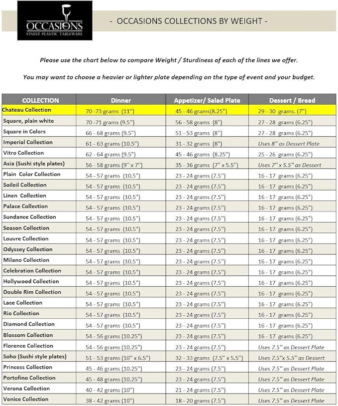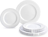 " OCCASIONS " 50 Plates Pack (25 Guests)-Extra Heavyweight Vintage Wedding Disposable/Reusable Plastic Plates -25x11'' Dinner + 25x8.25'' Salad/Dessert (Chateau Collection White)