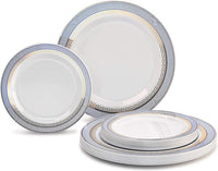 " OCCASIONS " 50 Plates Pack (25 Guests)-Heavyweight Wedding Party Disposable Plastic Plate Set -25 x 10.5'' Dinner + 25 x 7.5'' Salad/dessert plates (Louvre in White w/Blue & Gold) Sale