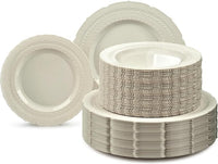 " OCCASIONS " 240 Plates Pack,(120 Guests) Extra Heavyweight Vintage Wedding Disposable/Reusable Plastic Plates 120x 11'' Dinner + 120 x 8.25'' Salad/Dessert Plate (Chateau Ivory)